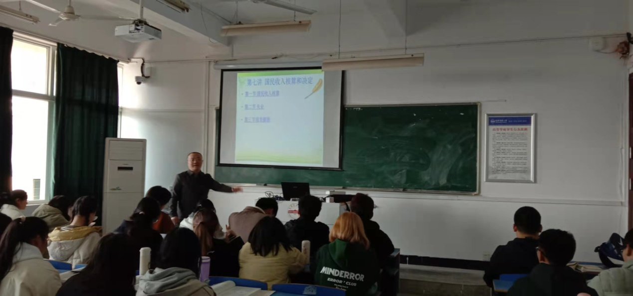 2021年11月15日上午第3节,国际经济与贸易教研室组织听评慈斌副教授的《经济学导论》课程,张毅芳副教授、国际经济与贸易教研室全体教师参与了听课。慈斌首先简要回顾了上节课的主要内容,然后借助图片,引入课程内容,通过案例、提问、做题、大家讨论向同学们讲授了国民收入核算和决定内容。