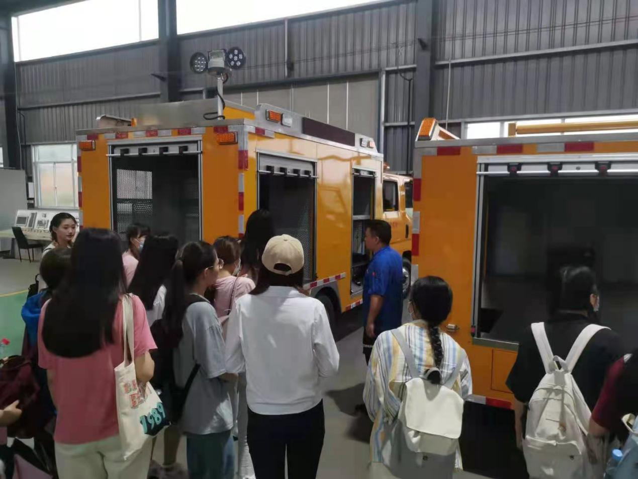 然后,师生们参观了企业产品及产品功能演示。该公司拥有多项专利技术,生产各种特种汽车,适用范围广泛,包括:城市供水、供电、供热、燃气管线、电信及公路应急抢修;石油、化工、天然气、油库等生产装置现场维护和长输送管线的野外抢修;事故抢险、消防和部队等单位野外设备的现场维护及抢修。