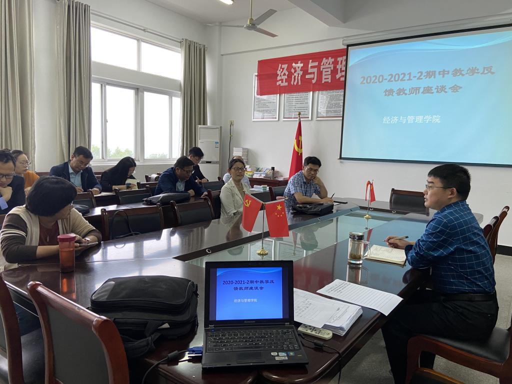 于2021年5月19日下午在龙山校区C楼四层会议室召开了“2020-2021学年第2学期期中教学反馈教师座谈会”。分管教学副院长黄先军、教务员及15名教师代表参会,会议由副院长黄先军主持。