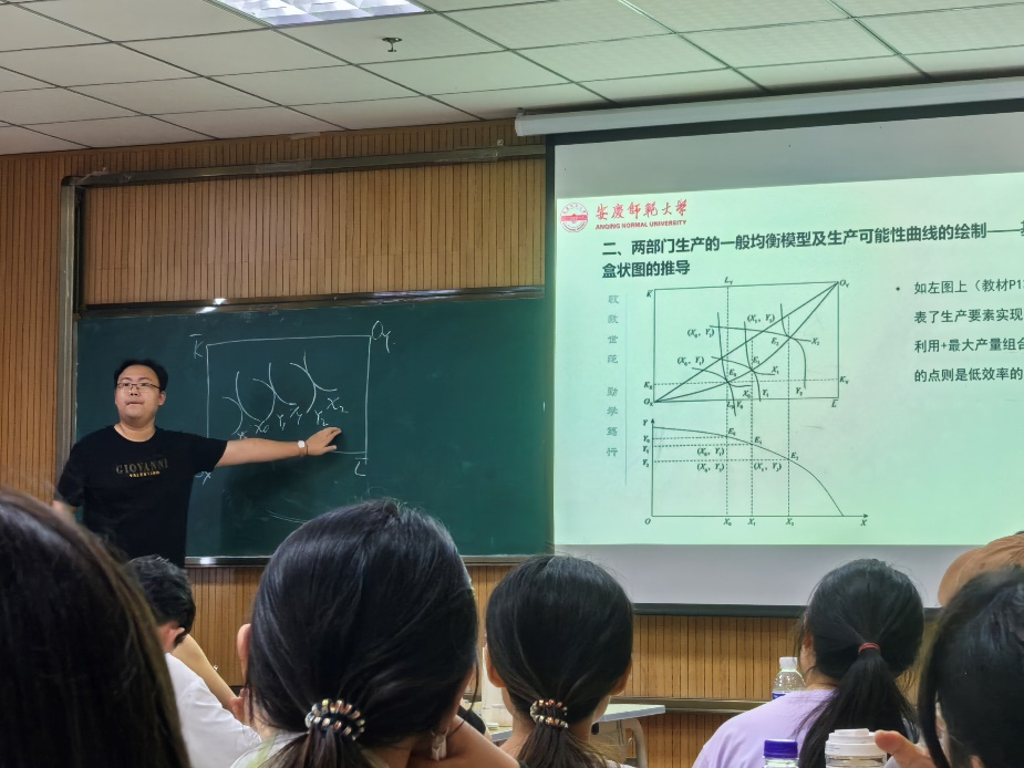 本次授课内容是国际贸易理论的微观基础,曾伏博士以我国持续拓展外贸新空间、助力扩大开放不断升级作为导入案例,引入本次课的主题教学内容。他运用数形结合的方法对理论知识进行剖析和推导,并结合生活生产中的现实案例进行讲解,同时充分融入课程思政元素,引导同学们积极思考。通过将复杂的理论知识数理化和生活化,并与学生积极互动,使学生对教学内容有了更深入的理解和把握。