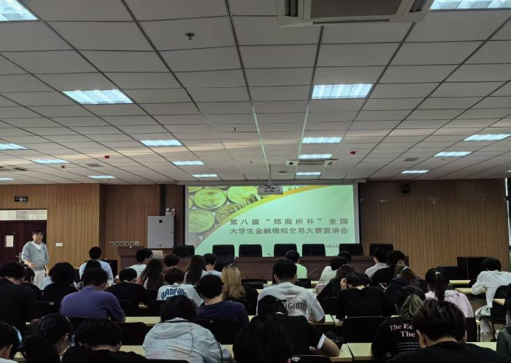 6月9日,金融工程教研室联合大学生金融投资协会在M112会议室,成功举办第八届“郑商所杯”全国大学生金融模拟交易大赛校园宣讲会。本次活动特邀华安期货安庆营业部经理何承金、客户经理张浩以及反洗钱专员姚轶作为主讲嘉宾,金融工程教研室部分教师以及150余名学生参加宣讲会。活动由王文博博士主持。