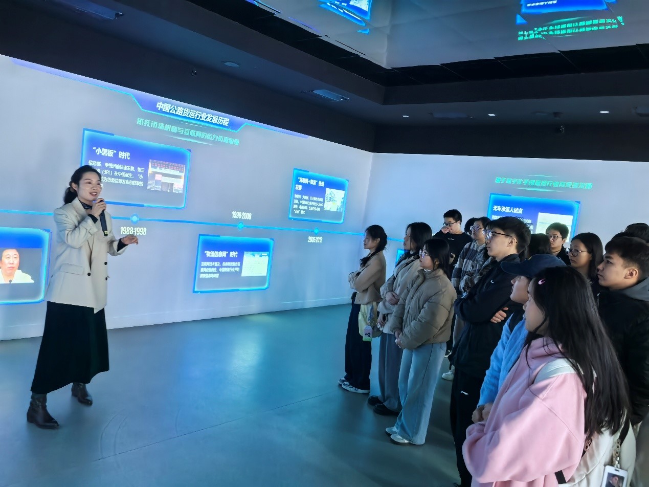 活动伊始,曹萌总监带领师生参观路歌业务展厅,结合行业发展脉络,详细讲解了中国公路货运行业的演进历程、路歌的成长轨迹,以及企业在全链路数字货运平台建设中的创新实践与行业领先成果。生动的讲解让师生们对行业发展现状、前沿技术应用有了全景式认知。