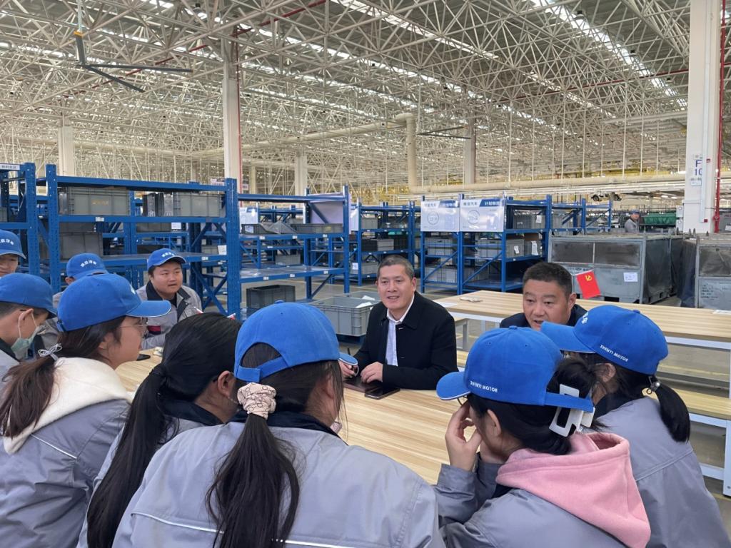 殷功利与企业负责人和实习生进行座谈,深入了解实习企业情况、实习工作安排,实习生们的实习和生活情况及遇到的困难问题,并就学生提出的困难问题与企业相关部门进行了充分的沟通。