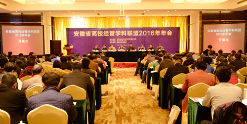 承办的“安徽省高校经管学科联盟2016年年会”隆重召开,来自省内外27所高校的39个经管学科院系近180名代表相聚宜城,围绕“专业学科建设与人才培养”、“供给侧改革与安徽区域经济发展”两大主题开展了富有成效的学术交流活动。我校党委委员、副校长汪时珍教授莅临出席,并代表学校在开幕式中发表了热情洋溢的致辞。