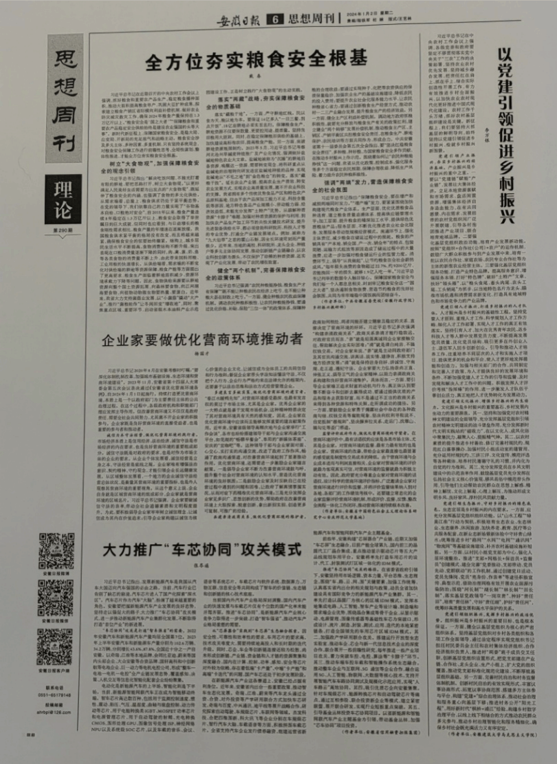 学术委员会主任杨国才教授撰写的资政建议,该项成果原题为“充分发挥企业家精神在我省优化营商环境中的独特作用”,首发于由省人民政府办公厅主管、省人民政府网管理中心主办的内刊《安徽省情》2023年第5期。