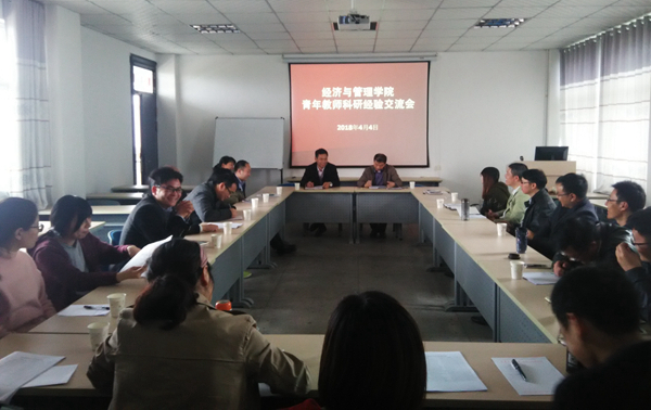 在菱湖校区MBA教室举办青年教师科研经验交流会,院长杨国才主持会议,院领导班子及全体青年专职教师共二十余人参加了会议。