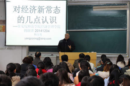 ,为2012级国际经济与贸易专业本科生做了题为《对经济新常态的几点认识》的学术报告,报告会由小说网