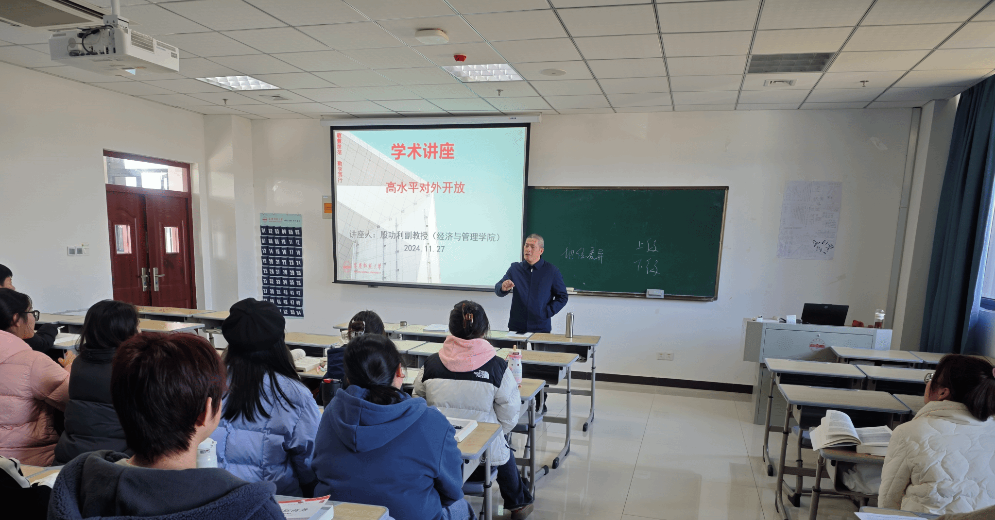 11月27日上午,殷功利副教授在M305作题为“高水平对外开放”的学术讲座,小说网 国际商务硕士研究生参会聆听。