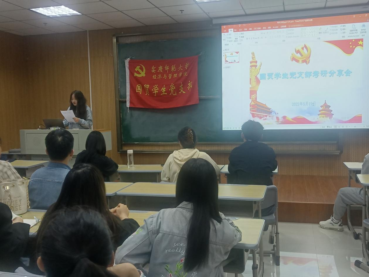 国贸学生党支部在M212举办了考研经验分享会。支部吴静、戴安琦、康文三位毕业班学生党员为2019级、2020级国际经济与贸易专业学生分享了考研经验、交流考研心得。