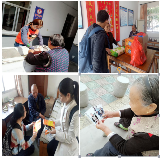 大家带着为老人们准备好的水果、生活用品、米、油和麦片等物品来到敬老院,原本寂静的敬老院顿时充满了笑声。同学们陪老人们聊天,认真倾听老人们讲述他们年轻时的故事,了解到他们那个时代的情况,深刻感悟了现在这个时代生活的来之不易。同学们还为老人们打扫卫生,洗碗。最后大家帮助老人们照相,随后去照相馆洗了出来,发给每位老人,当老人们拿到自己的照片时,看了很久很久,显得非常开心。