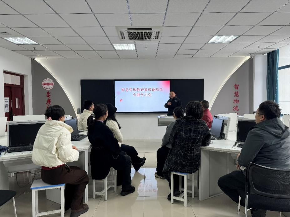 12月11日下午,为进一步加强师德师风建设,以教育家精神引领高素质专业化教师队伍建设,积极营造尊师重教良好氛围,财务管理教研室在M110教室开展了以“弘扬教育家精神、矢志立德树人”为主题的师德师风教育活动。