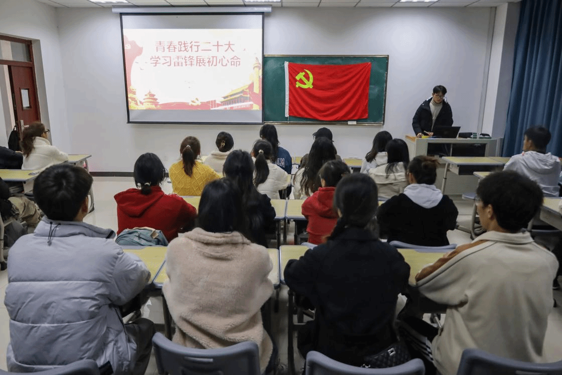 “学习雷锋好榜样,忠于革命忠于党……”3月5日下午,各党支部共40余名学生党员齐聚M303教室,观看引领雷锋精神学习视频,感悟雷锋精神,汲取奋进力量。全体学生党员颂唱《学习雷锋好榜样》之歌,在淳朴简练的曲调和富有感情地颂唱中,深刻体会雷锋精神意义。为了让合唱整体更加和谐,大家提前练习,了解歌曲产生背景与情感内涵,提升合唱水准。