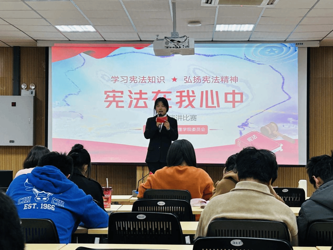 比赛现场气氛热烈,选手们从不同角度深入浅出地解析了宪法对社会的重要作用,阐释了宪法在保障公民权益、维护社会稳定、促进国家发展等方面的重要性。选手们的演讲不仅展现了对宪法的了解和思考,也向大家宣传了法治观念。
