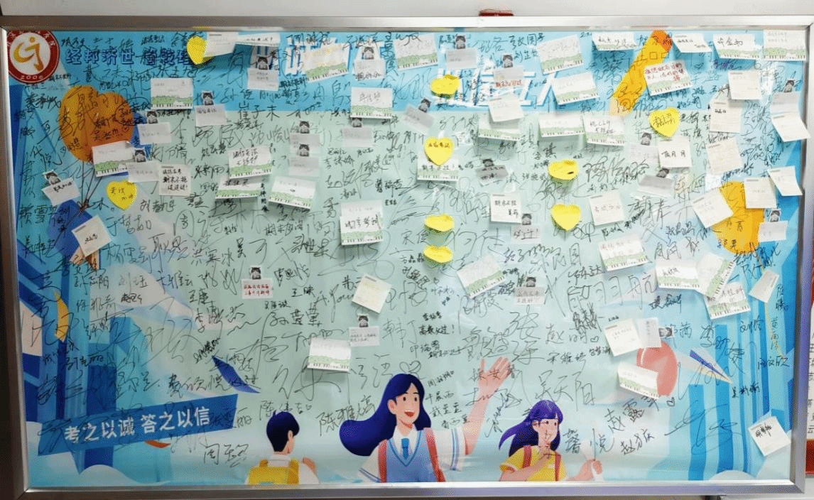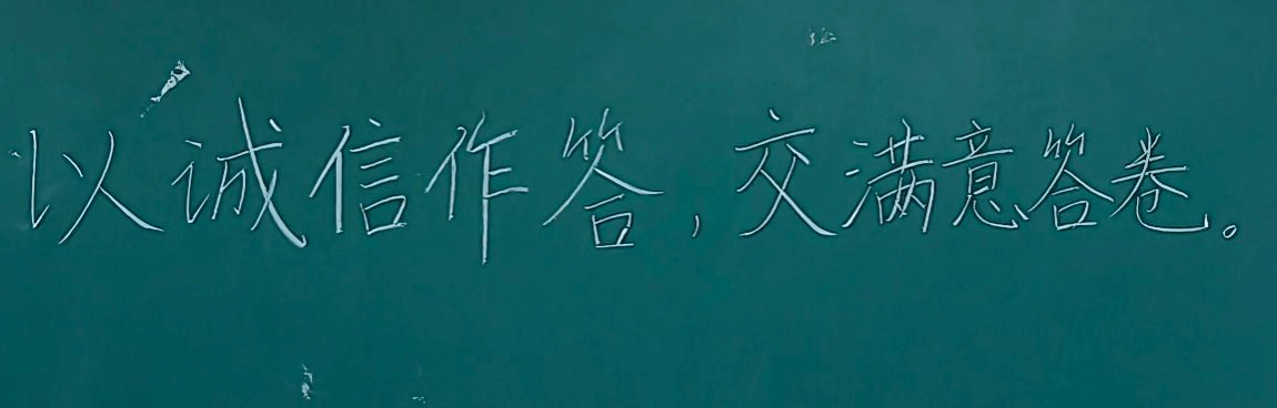 在教学楼开展诚信标语活动。同学们在黑板上写下各种诚信考试的标语,以此提醒大家认真备考、遵守考场纪律,营造出诚信考试的氛围。
