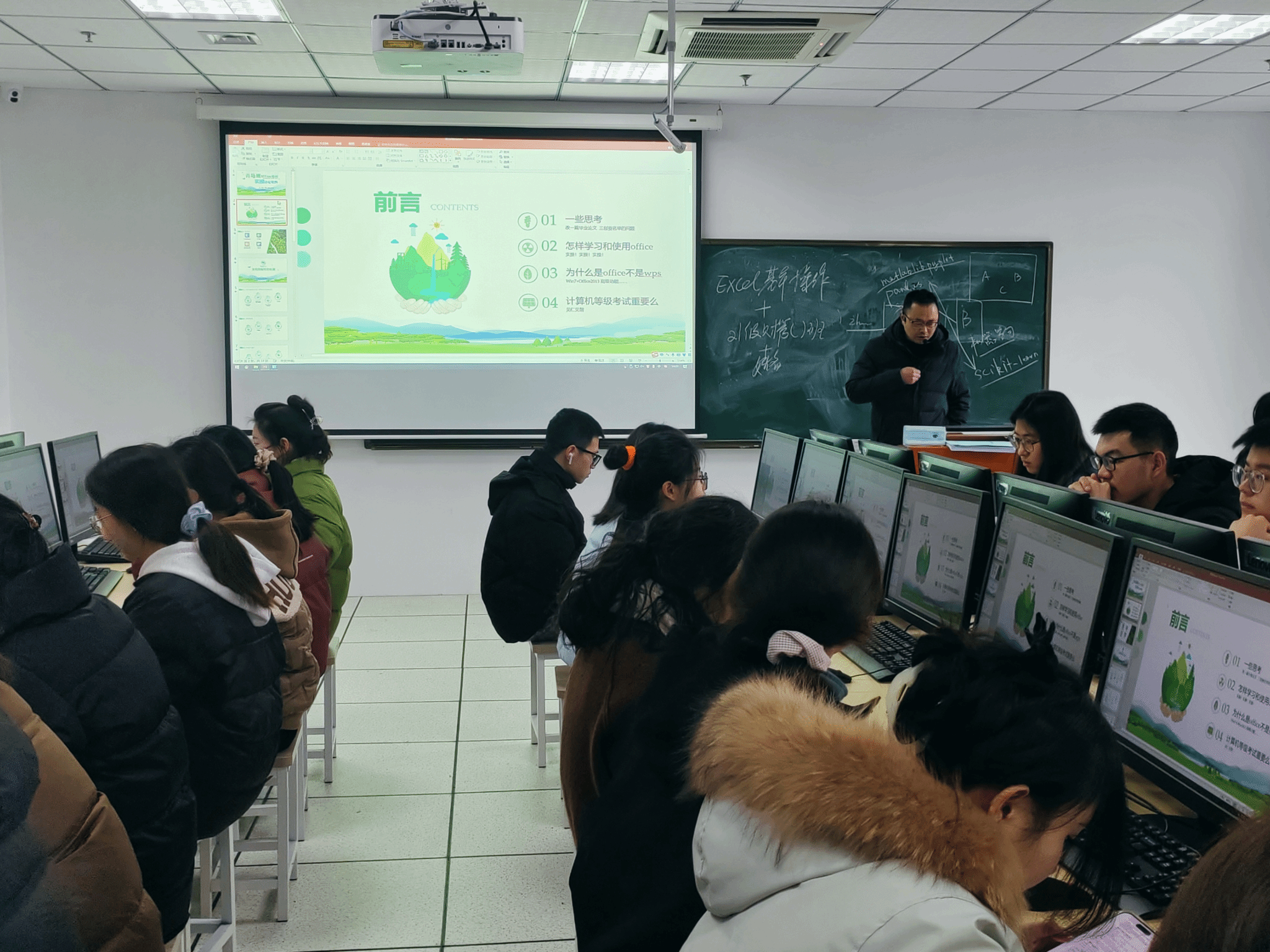 在培训中,郑羽以学生毕业论文撰写、学科竞赛填报表填写以及PPT制作为实例,详细讲解了文档排版综合处理、电子表格操作、演示文稿制作技巧以及资源分享等方面的知识。培训结束后,郑羽还向同学们推荐了一些实用的网络学习课程,并鼓励他们利用课余时间进行自主学习,将所学知识运用到实际操作中,以熟练掌握办公软件的使用方法。