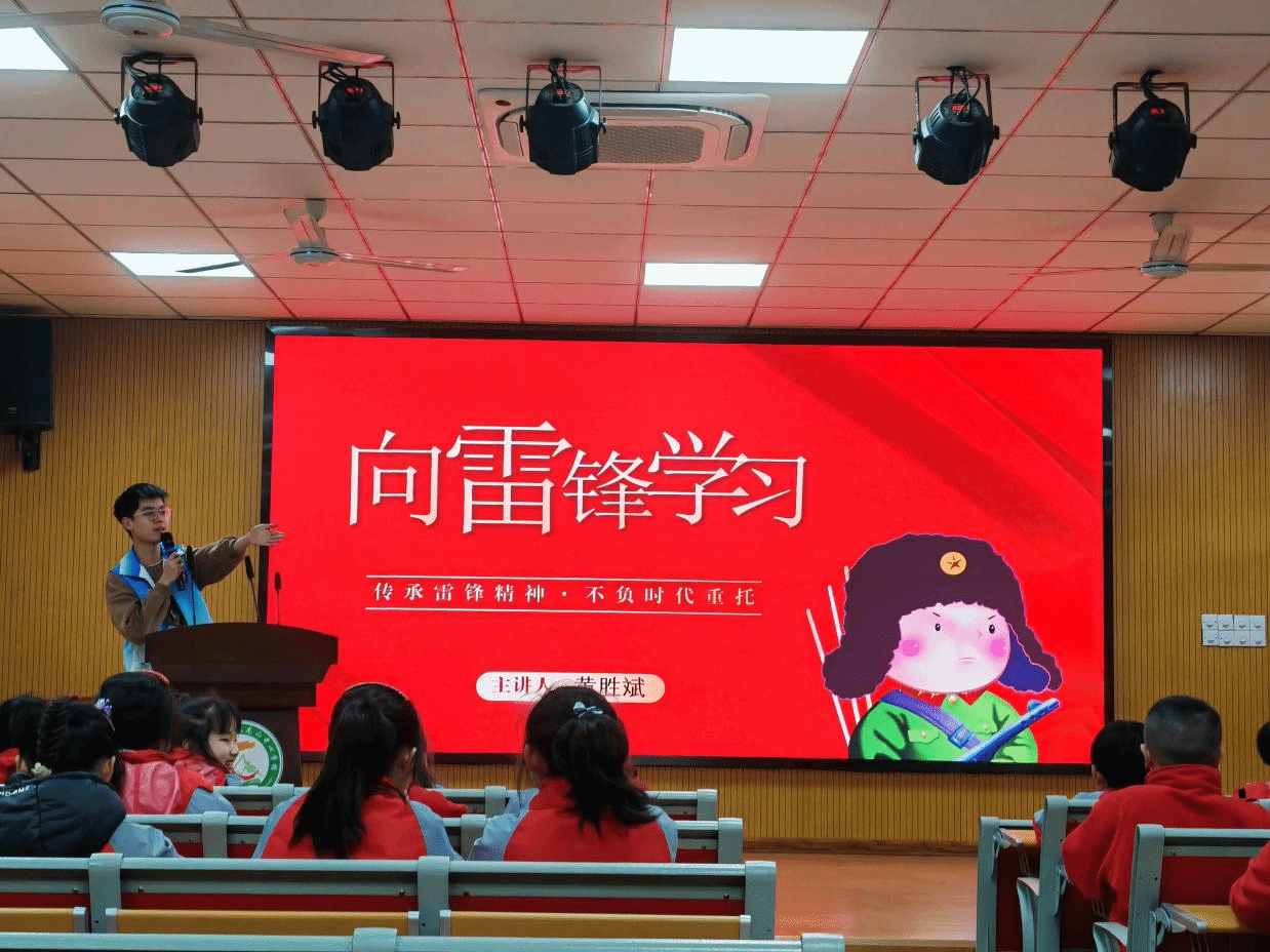 活动伊始,一首激昂的《学习雷锋好榜样》歌曲为活动揭开了序幕。小学生们热情高涨,纷纷表示要以雷锋为榜样,积极参与各项活动。现场气氛瞬间升温,小同学们端坐整齐,全神贯注地观看了关于雷锋事迹的宣传片。影片中,雷锋的英勇事迹和无私奉献精神深深地打动了在场的每一位同学。