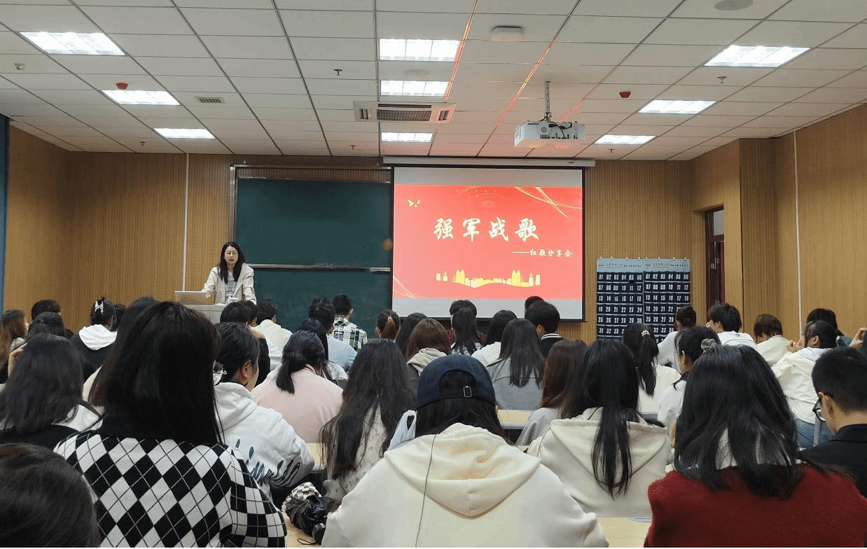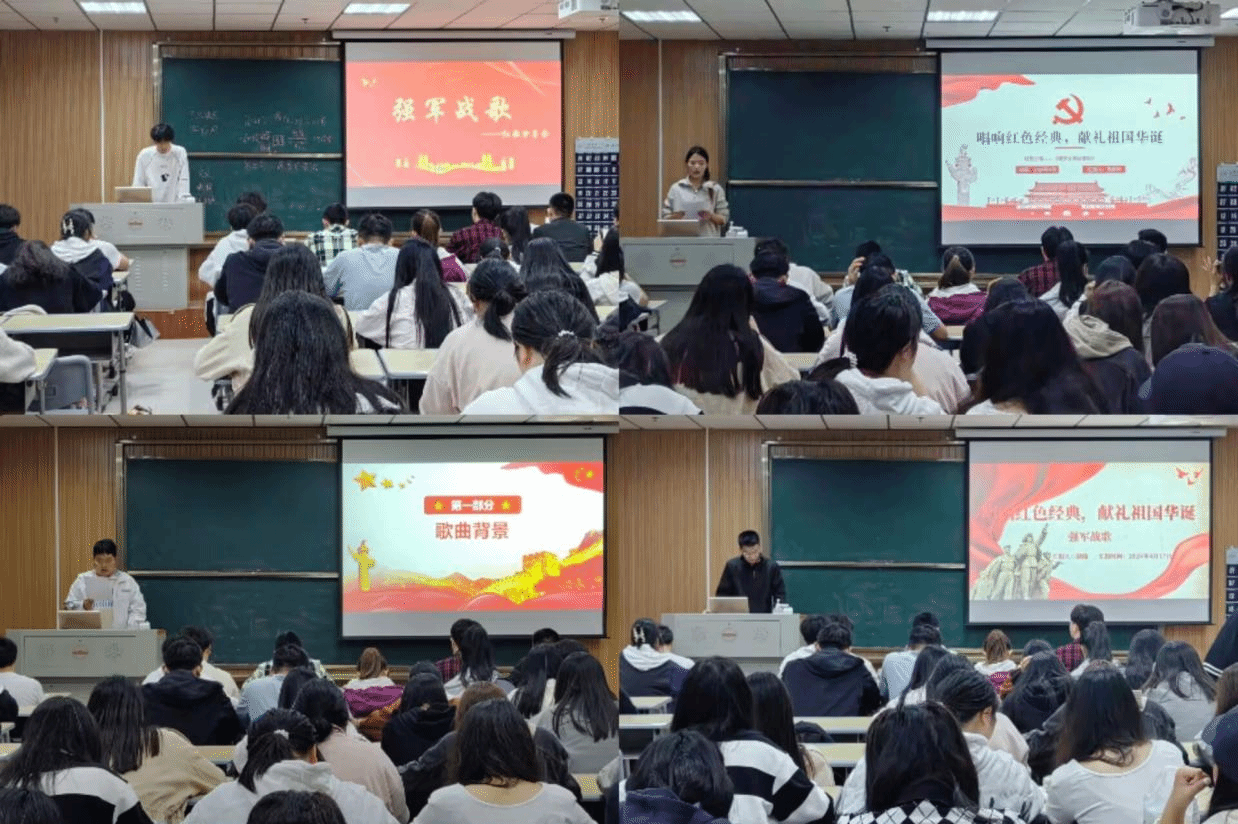 12位小组代表依次登场,或感慨万千、或精神振奋、或陶醉其中,同学们以满怀热情和深刻的历史理解,分享了各自精心准备的红歌故事。从《强军战歌》的雄壮旋律,到《唱支山歌给党听》的真挚情感、《黄河大合唱》的激荡人心,再到《映山红》的优美旋律,同学们从创作背景、音乐特色、历史意义及价值等多角度,深入剖析了这些歌曲背后的历史渊源与精神内核。