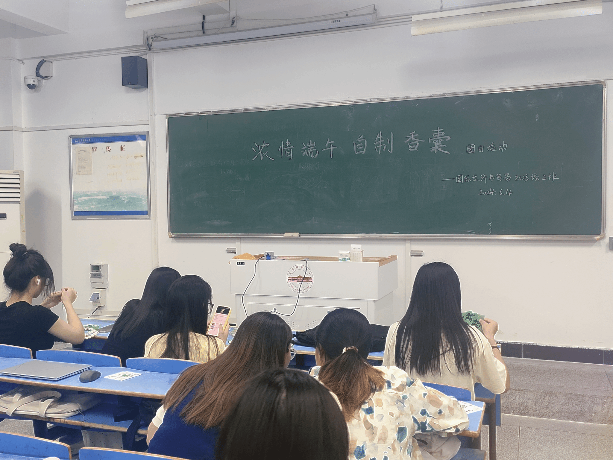 2023级国际经济与贸易专业2班在C505教室举办以“浓情端午,自制香囊”为主题的团日活动。