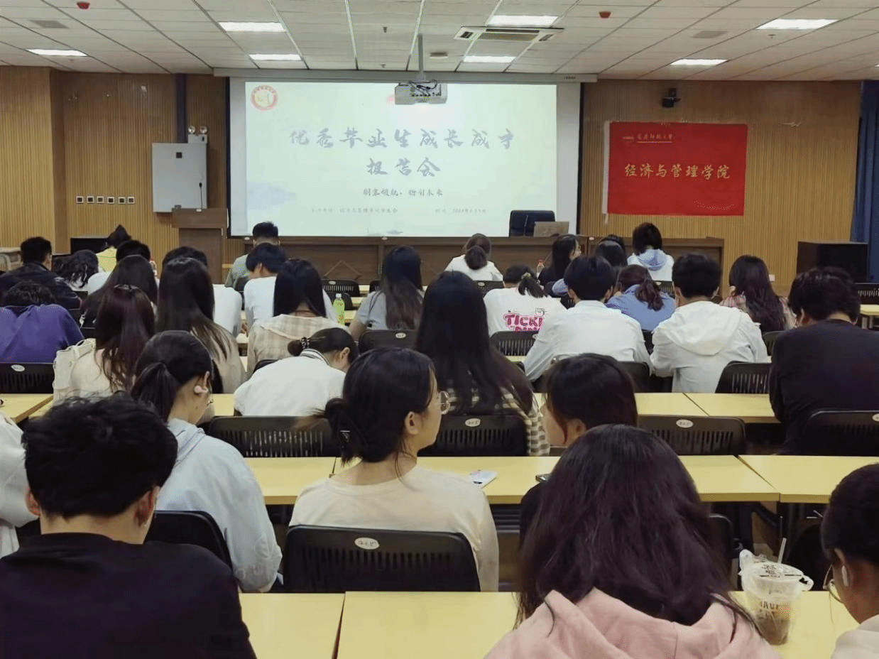 在互动环节,现场同学们积极提问,5位毕业生同学热情耐心地一一回答。物流管理专业2023级2班袁喜娇同学感慨道:“听了这些优秀学长学姐的分享,原来这么多优秀的同学就在我们身边,我作为经管学子备受鼓舞,也更加明确了未来努力的方向。”