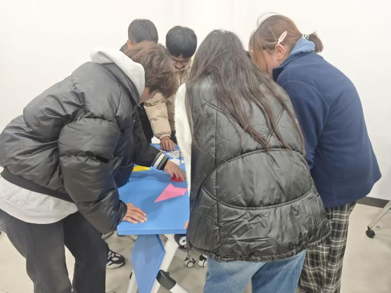活动过程中,学员们以小组形式参与“管理七巧板”活动,各组学员根据所领取的任务书和图形卡,运用手中的七巧板来完成指定任务。每位同学都积极投入,密切配合,展现出同学们的创新思维能力和团队协作精神。