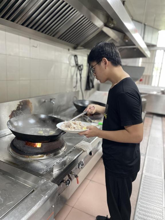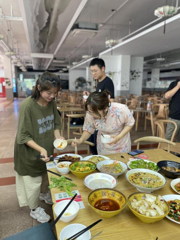21级国际经济与贸易2班蒋冰冰和大家介绍道,“酸嘢是我家乡广西的特色美食,这是我第一次留在校园里没能跟家人一起过端午节,但是我很开心能够通过这次活动来让大家认识我家乡的美食”。21级工商管理2班卢晓玉表示,“虽然做饭时有点手忙脚乱,但丝毫不影响同学们之间互相帮助,当看到一大桌丰盛的菜肴,我想大家的心中一定都满是欣慰。我爱好做菜,跟妈妈学做饭已经三年有余,感谢老师及同学们对我所做菜品的肯定,这大大增强了我探索厨艺之路的信心,希望以后还可以拥有更多为大家掌勺的机会”。