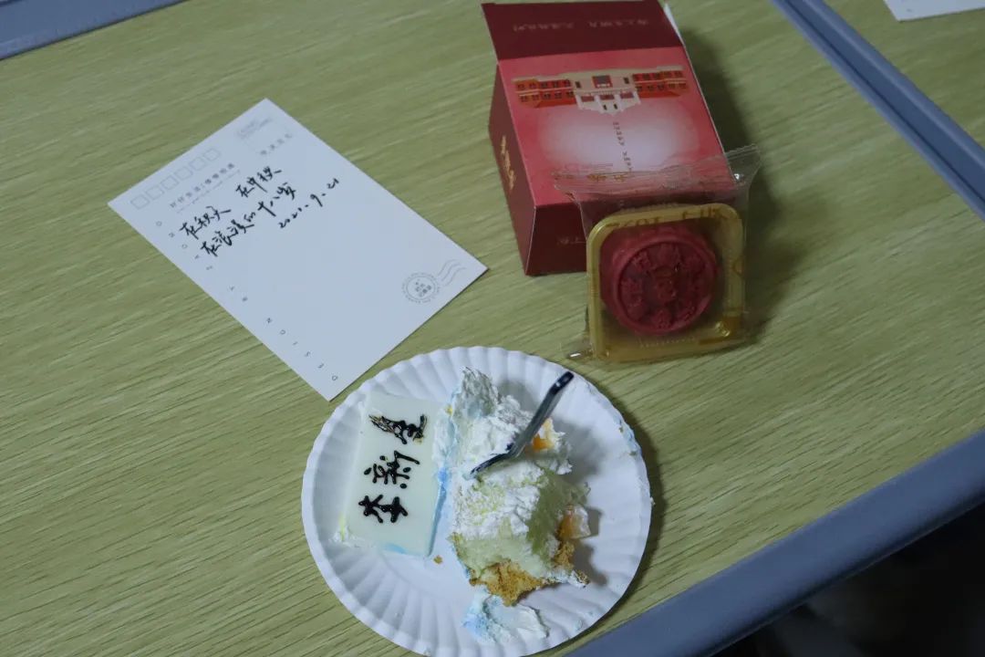 举起手机,按下快门,工商管理专业2021(3)班的李新星正拍照记录下这宝贵的一刻,并随即在社交平台发表动态并配文:中秋节快乐!感谢亲爱的辅导员为我们过集体生日!对于李新星来说,这是她第一次远离家乡在外地过节,没有亲人的陪伴她并不觉得遗憾,“收到了学校定制的月饼和辅导员的生日惊喜,感觉这个中秋节比以往的都更有意义一些”。