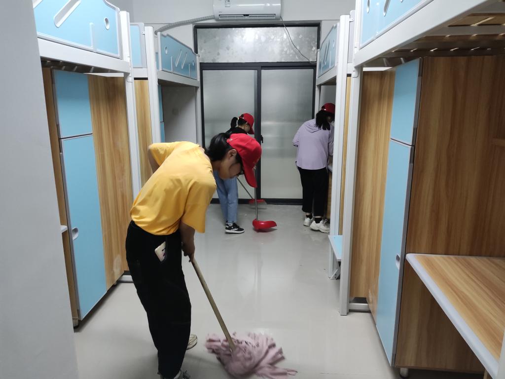 志愿者们明确了各自的责任区域后,迅速投入到有序的清扫工作之中。大家有条不紊地打扫,从洗手间的边边角角到桌子、床铺底下,任何一个角落也不放过,致力做到全面整洁,窗明几净。清洁过后的宿舍焕然一新,干净温馨中充满着学长学姐对新同学们的关心与期盼。