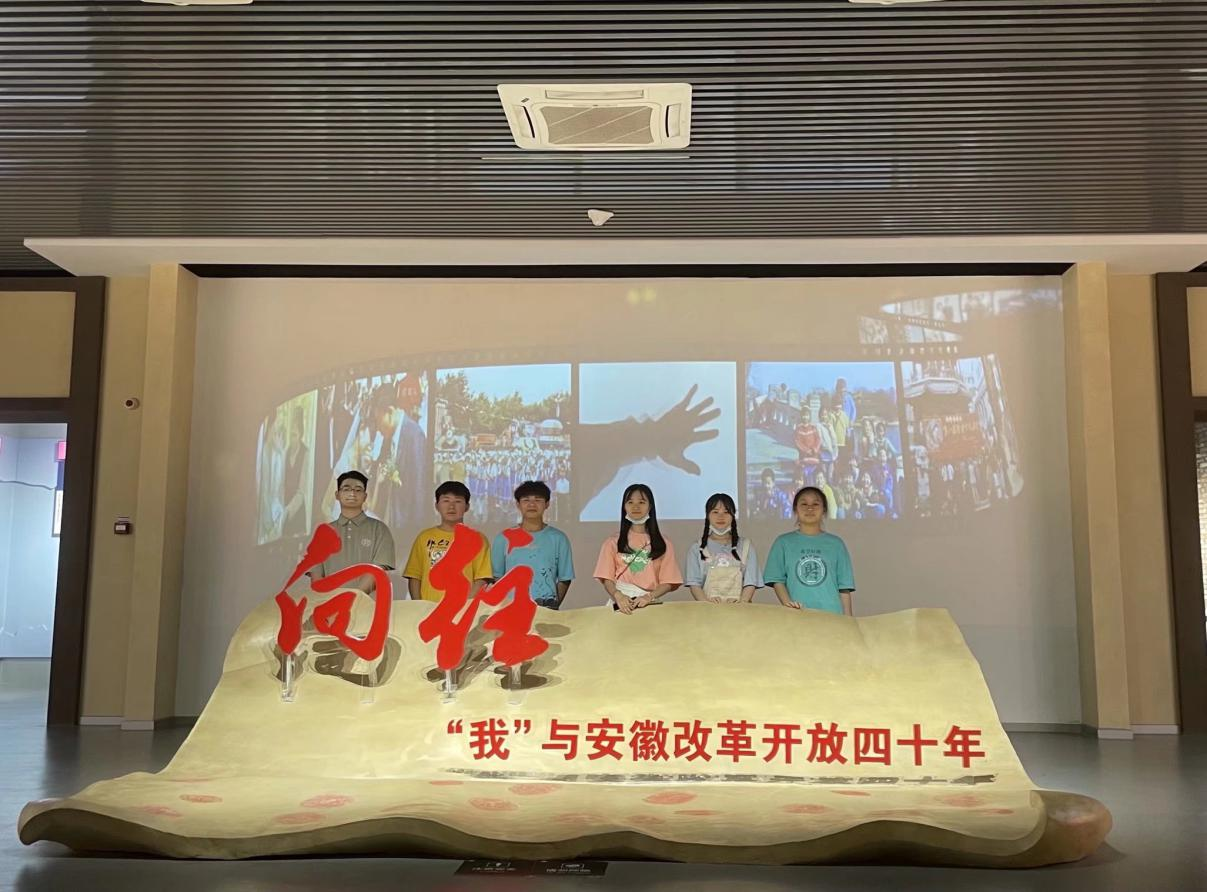 2021年7月14日,实践团队赴安徽博物馆开展了参观调研社会实践活动。安徽博物馆位于合肥市安庆路268号,是安徽省唯一一家集自然、历史、社教为一体的省级综合类博物馆。团队成员一次参观了3个展馆,第一个展馆是“烽火江淮”,展览的是淮海战役、渡江战役的历史;第二个展馆“向往”,主要展示的是安徽凤阳小岗村带头进行家庭联产承包责任制的历史;第三个展馆“决胜小康”,展示了全面建成小康社会以来老百姓衣食住行的变化。