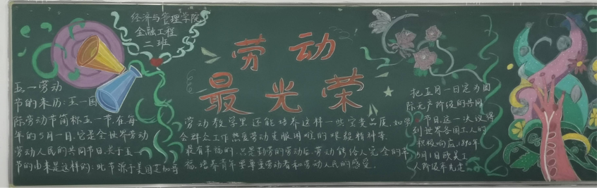 活动期间,各个班级积极参与,以丰富多彩、图文并茂的形式在黑板上展示爱国卫生等宣传内容,讲述了劳动节的来历,普通劳动者的事迹,赞扬劳动者的勤劳精神,歌颂劳动者的美好品质,并宣传中华优秀传统劳动文化。各班设计的板报新颖独特,充分展示当代大学生奋发进取、热爱劳动的精神风貌。