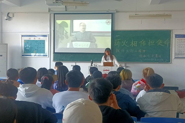 活动开始,同学们按照各自的专业班级,由班委带领到教室观看大别山精神主题直播。大家带着对英雄的敬仰,对革命先烈的崇敬,满怀深情地观看视频,认真记录笔记,每每精彩之处更是掌声热烈。