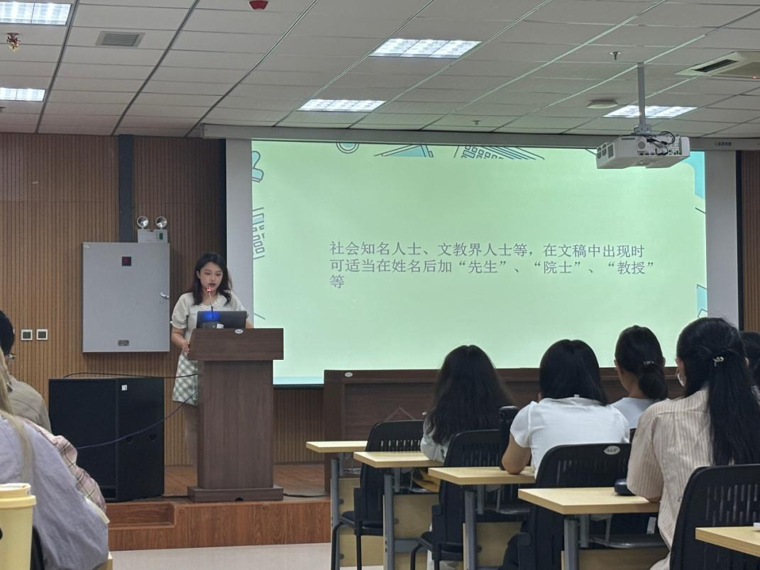 会上,新媒体中心部长郭靖萱同学针对新闻宣传能力提升开展培训。她结合小说网