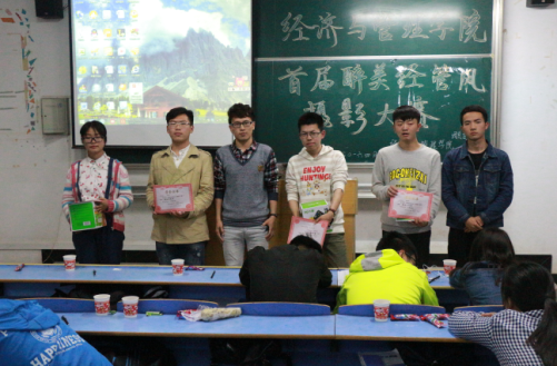 经过激烈比拼,14级财务管理1班张悦夺得冠军,13级金融工程2班孙茜然和15级国际经济与贸易合作班王舸分列二三名。同时,15级财务管理吴宁波、15级国际经济与贸易1班金宇、14级金融工程1班王铮、14级金融工程1班疏安南分别获得最佳人气奖、最佳创意奖、最佳视觉奖以及最佳构图奖。