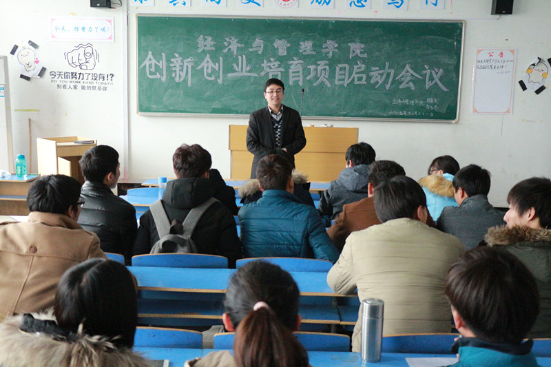 会上,张军传达了学校《关于申报2015年大学生创新创业培育项目的通知》精神以及经管小说网