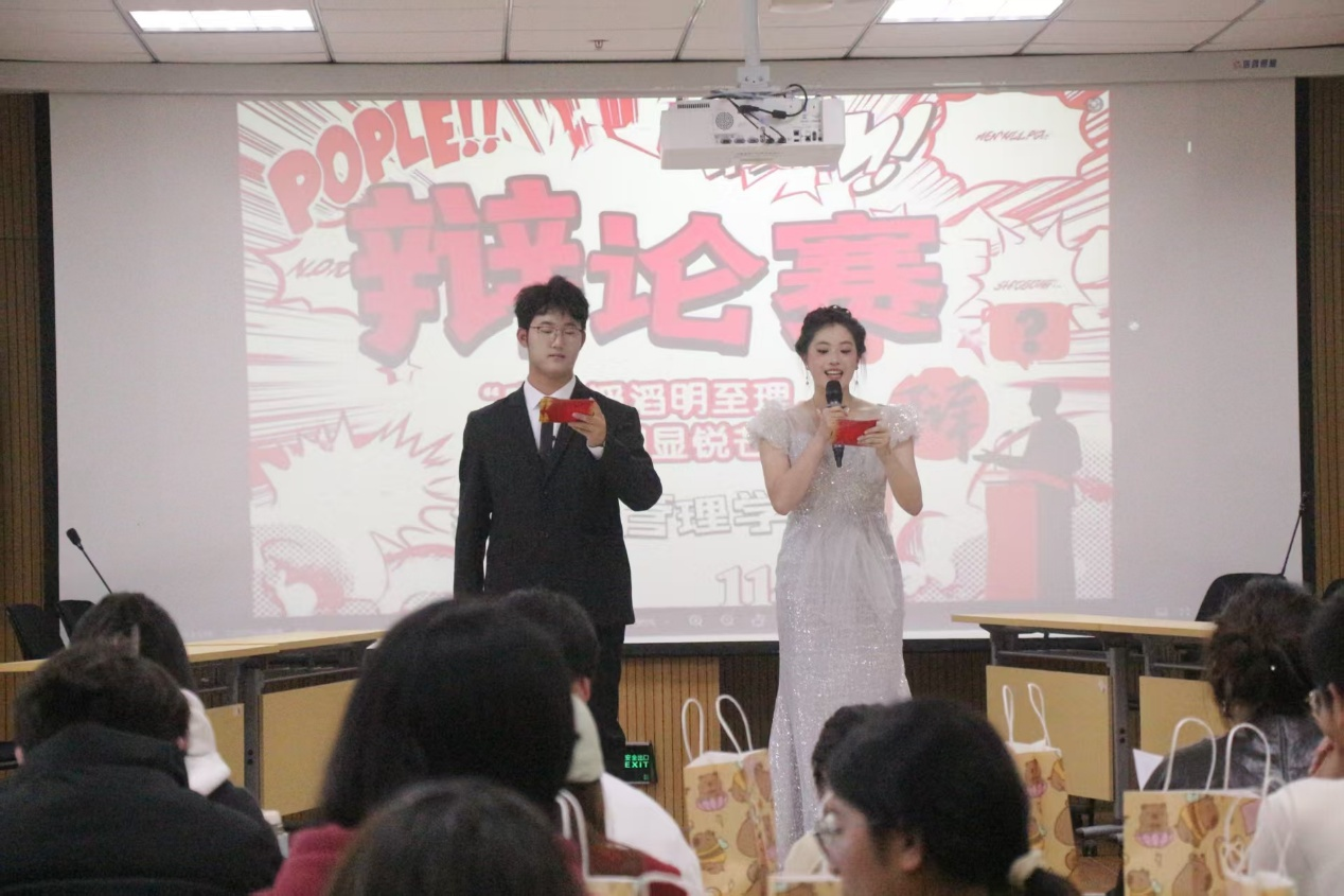 第十九届“纵横杯”新生辩论赛总决赛在M112教室顺利举行。本次比赛由校辩论队成员与院辩论队成员共同担任评委,吸引了近200名同学现场观摩。