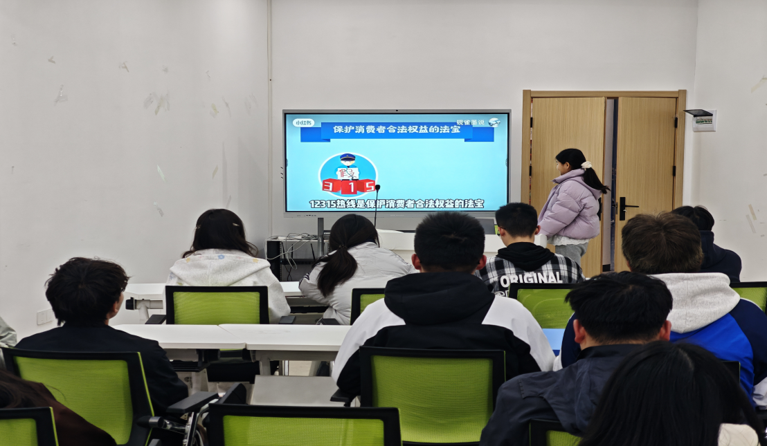 本次活动创新形式、丰富内容,以沉浸式、互动式体验打破传统普法宣传的局限,让消费维权知识真正入脑入心。活动伊始,全体同学共同观看精心筛选的维权案例短片,短片聚焦校园高频消费陷阱、维权流程实操、典型纠纷处置等内容,通过直观鲜活的案例,帮助同学们建立起对消费维权的清晰认知。