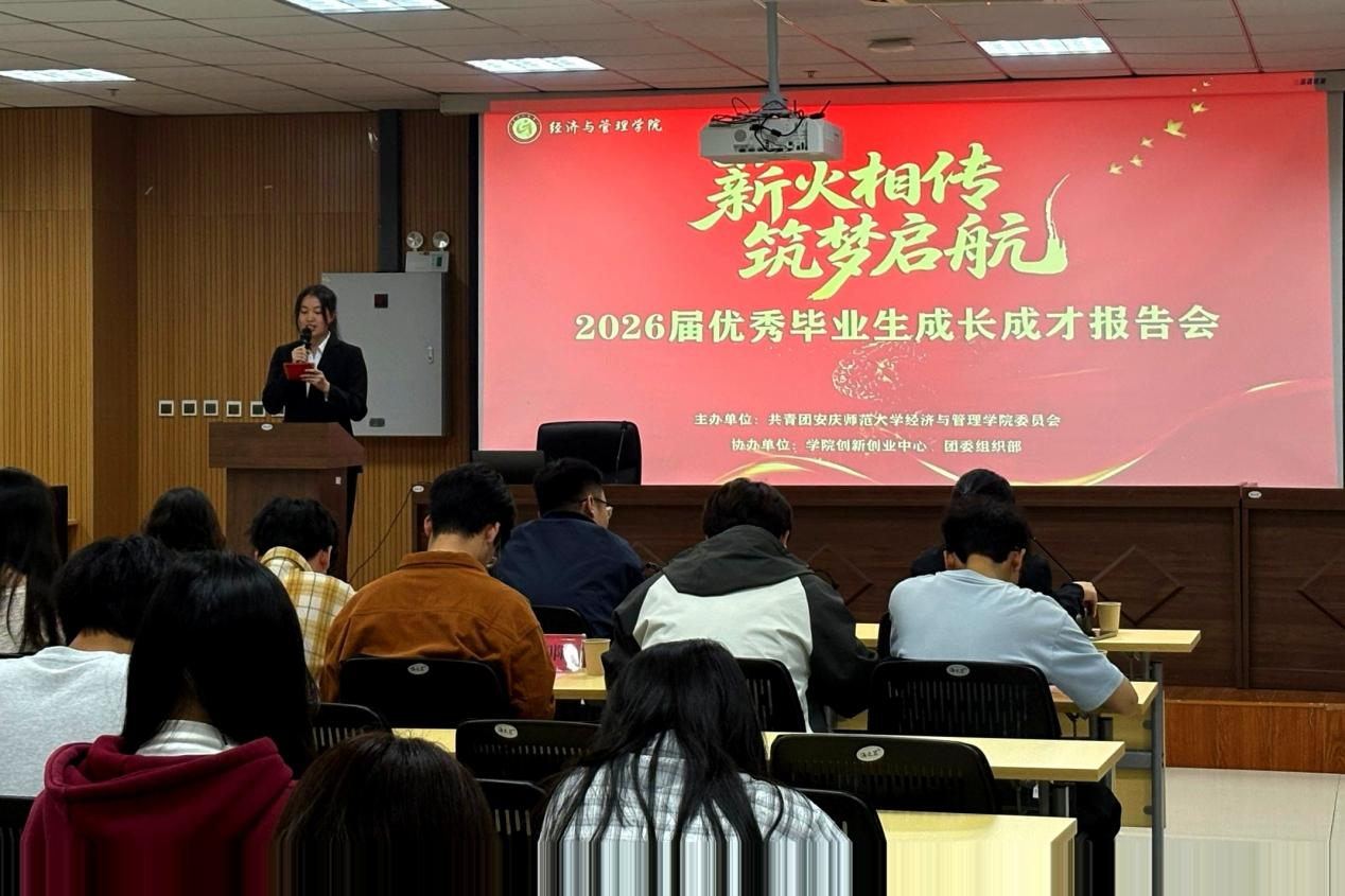 报告会上,三位优秀毕业生依次分享成长经验。物流管理专业刘金泽以《既然选择了远方,便只顾风雨兼程》为题,分享考研备考心路历程,鼓励同学们坚定目标、持之以恒;财务管理专业卢蕊以《想,都是问题;做,才是答案》为主题,讲述考研上岸安徽大学的实战方法,倡导以行动化解焦虑;金融工程专业闵洁立足入职中国建设银行安徽省分行的实战经验,围绕简历打磨、面试技巧、职业选择等方面,为同学们分享求职干货、答疑解惑。