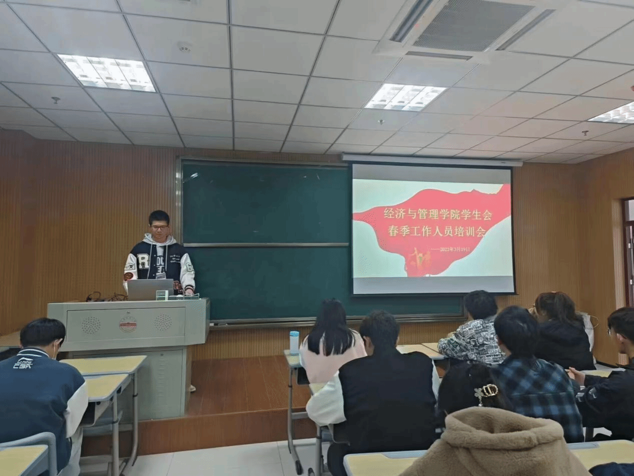 学生会在M301举办2023年度春季学生会工作人员培训会,学生会全体工作人员参加会议。