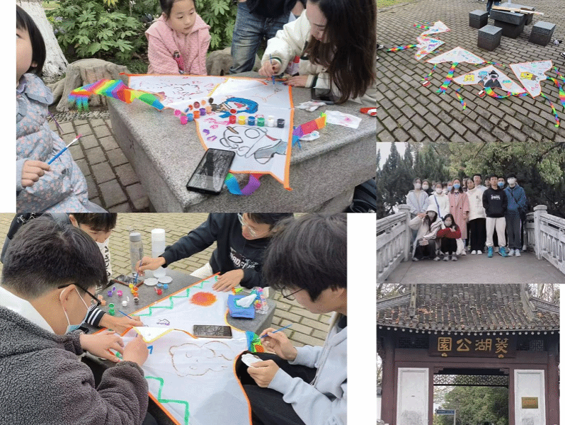 物流管理专业2022(2)班的同学们来到位于市区的菱湖公园,在邂逅春日的同时,用手工绘制风筝图案的方式,将雷锋精神宣传给来公园游玩的小朋友们。