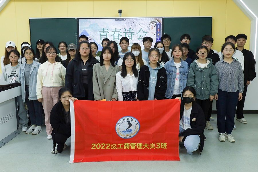 工商管理类专业2022(3)班在D306教室开展“我以我手执新笔,我以我心向红旗”主题团日活动。40余名同学以字传情,通过剪裁杂志中的词句,创意拼贴成新的诗句,创作自己的“五四精神专属诗篇”。