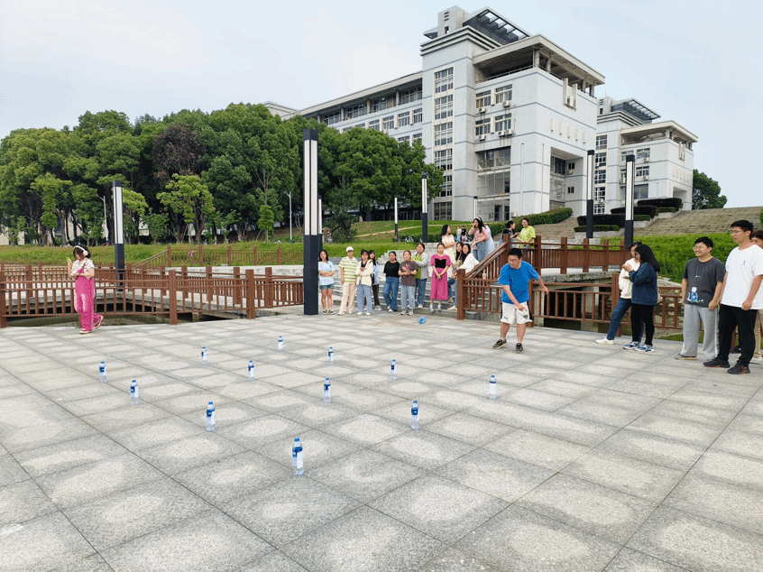 活动分为两个部分,第一部分是开展“发泄沙包”的游戏,即每个人有两次机会用沙包砸向贴有不同负面标签的矿泉水,砸中即可获得相应小礼品。看着一个个瓶子倒下,同学们不断欢呼,每位同学都积极参与,想要将心中的负面情绪打倒,做自己情绪的主人。