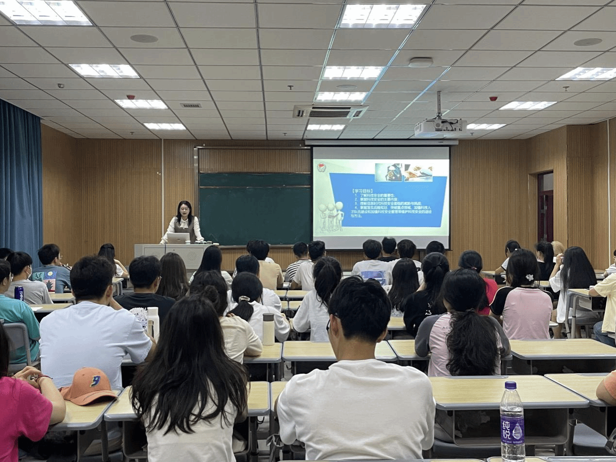 孙栎简分别从国家科技安全的重要性、面临的威胁与挑战及如何维护科技安全等方面进行讲解,并就同学们如何在日常学习生活中增强国家安全意识提出了一些具体建议。同学们展开了积极讨论,纷纷就维护科技安全的做法发表了自己的看法。