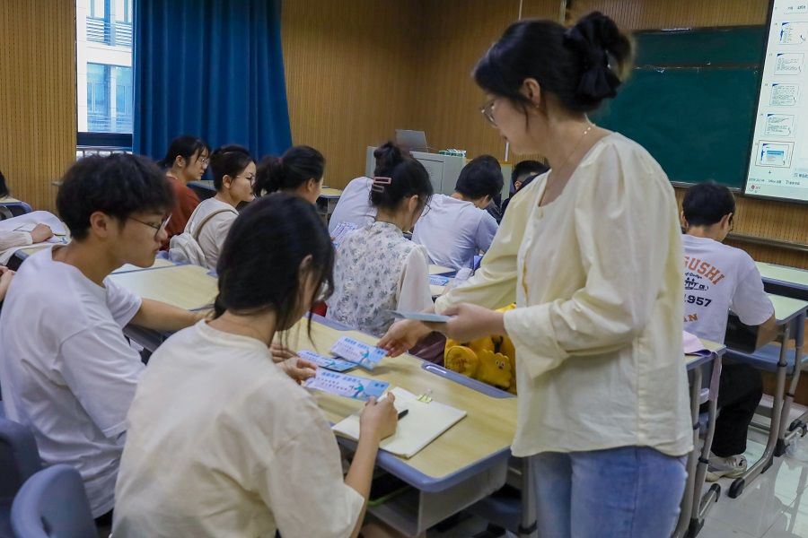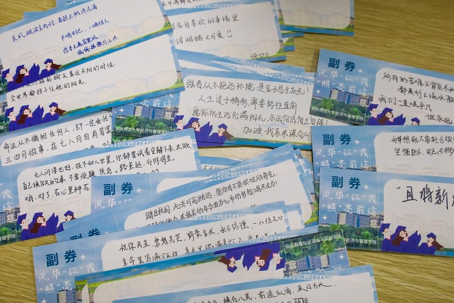 “前路一片美好,莫负人间莫负己。”“有梦想就不要轻言放弃。”……在课程的最后,孙芮向学生们发放了免费拍摄证件照片的卡券,卡券背面写满了2022级同学对学长学姐们的祝福。