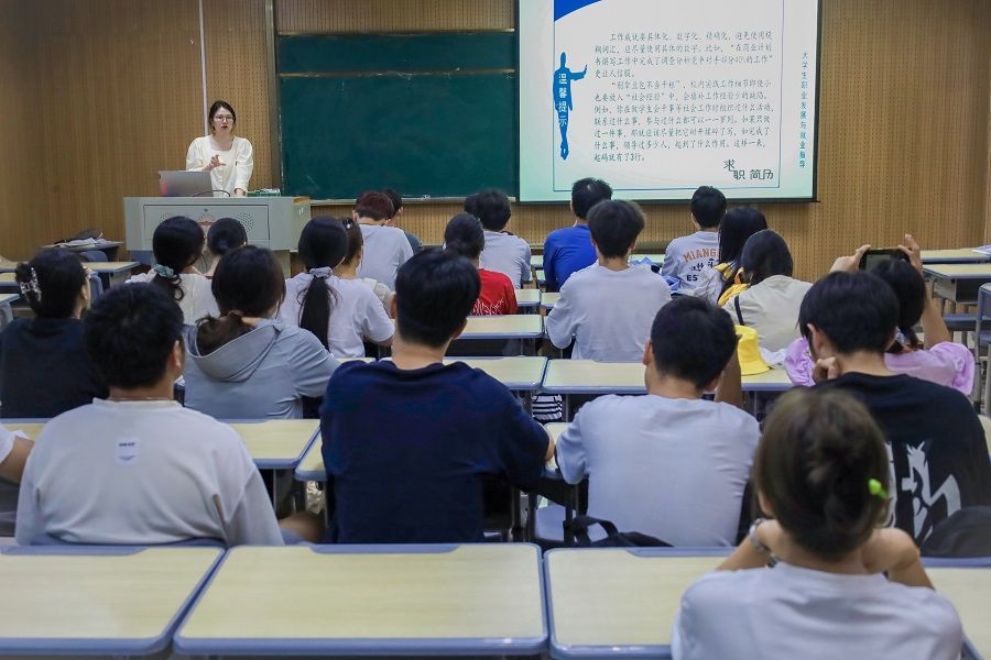 课上,孙芮结合自身经验,从个人基本信息、教育背景、实践活动等八个方面为学生们详细讲解简历制作方法。孙芮表示,简历制作过程中应突出求职意向和自身特色两个关键点,展现与应聘职位所需技能相关的个人信息。在文字表述上,要做到具体化、数字化、精确化,避免使用模糊词汇,并进一步明确制作规范。