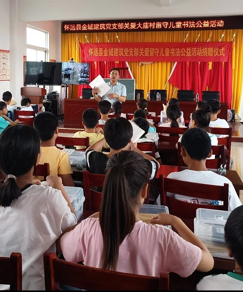7月1日,实践团队于大庙村小学操场举行开班仪式,村党支部书记及项目负责人张玉柱参加仪式。张玉柱充分肯定了大学生积极参加暑期实践活动的责任担当,并对后期活动内容和注意事项提出指导性建议,期待队员们充分发挥专业知识,在实践中得到锻炼,收获宝贵的经验。怀远县金城建筑工程有限公司党支部还为参加活动的儿童捐赠了书法用具。团队队员纷纷表示在后续支教活动中将认真负责,砥砺前行。