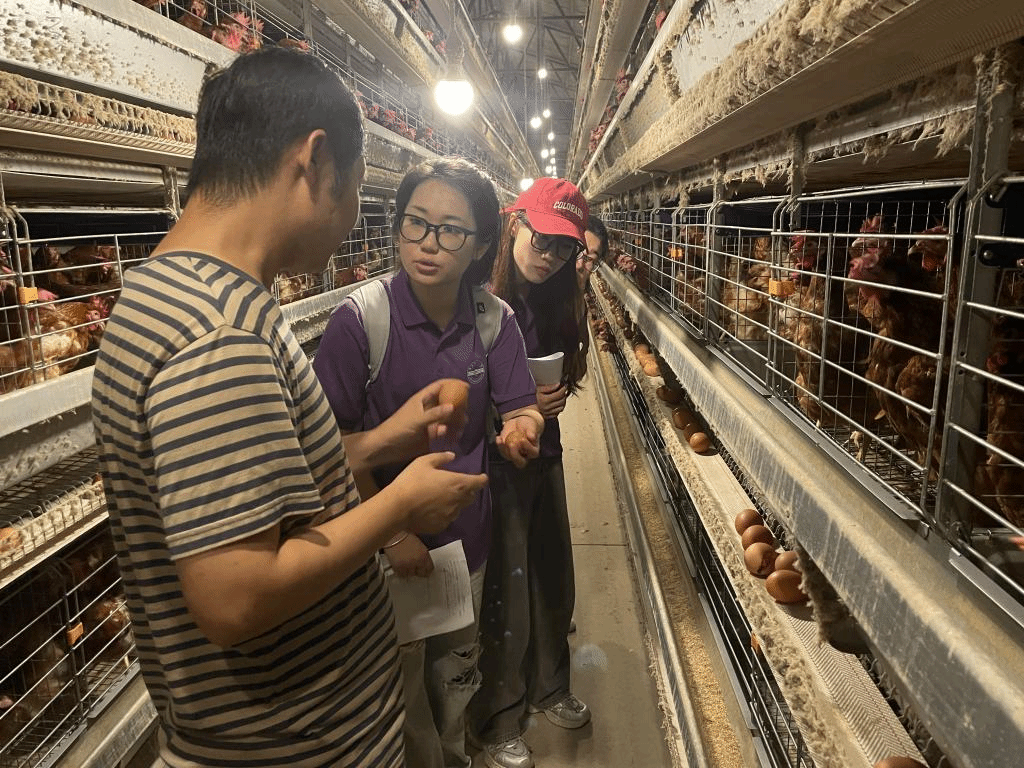 这些年来,同乐生态农业有限公司先后投资近6000万元,建设智能化物联网养殖系统,建成同乐生态农业蛋鸡养殖工厂,实现自动饮水、自动喂食、自动清粪、自动干粪等全物联化生产,实现蛋鸡养殖产业化、规模化。“产业的数字化模式是如何运行的?产蛋率与经济效益如何?数字化特色是怎样一步步打造出来的?”实践团成员李燕忍不住提出自己的疑问。“我们采用数字化养殖模式,可实时监控、实时调整,通过精确调控给鸡提供最舒适的环境,排泄物与鸡及时分离,保证了鸡的健康。得益于科技的力量,我们的总体效益能比传统养殖提高15%。当前我们的自动化设备通过不断地技术革新已更新至第三代,为的就是更好的服务产业、服务大众。”汪峰向实践团成员介绍道。