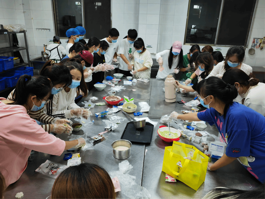 2022级金融工程一班在西苑食堂开展了“月满中秋,饼承心意”冰皮月饼制作团日活动,共有30余名同学参加。