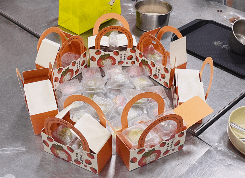 月饼制作完成后,同学们纷纷给自己的月饼拍照并进行包装,一部分送给了食堂工作人员,一部分准备送给亲人朋友。收拾好桌子后,同学们收到了食堂负责人为大家准备的惊喜—-薯条和西瓜,同学们吃着自己亲手做的月饼和食堂赠送的小吃,其乐融融。很多同学表示,这是他们第一次亲手制作月饼,并且很高兴能和同学们一起制作月饼,喜迎中秋佳节。