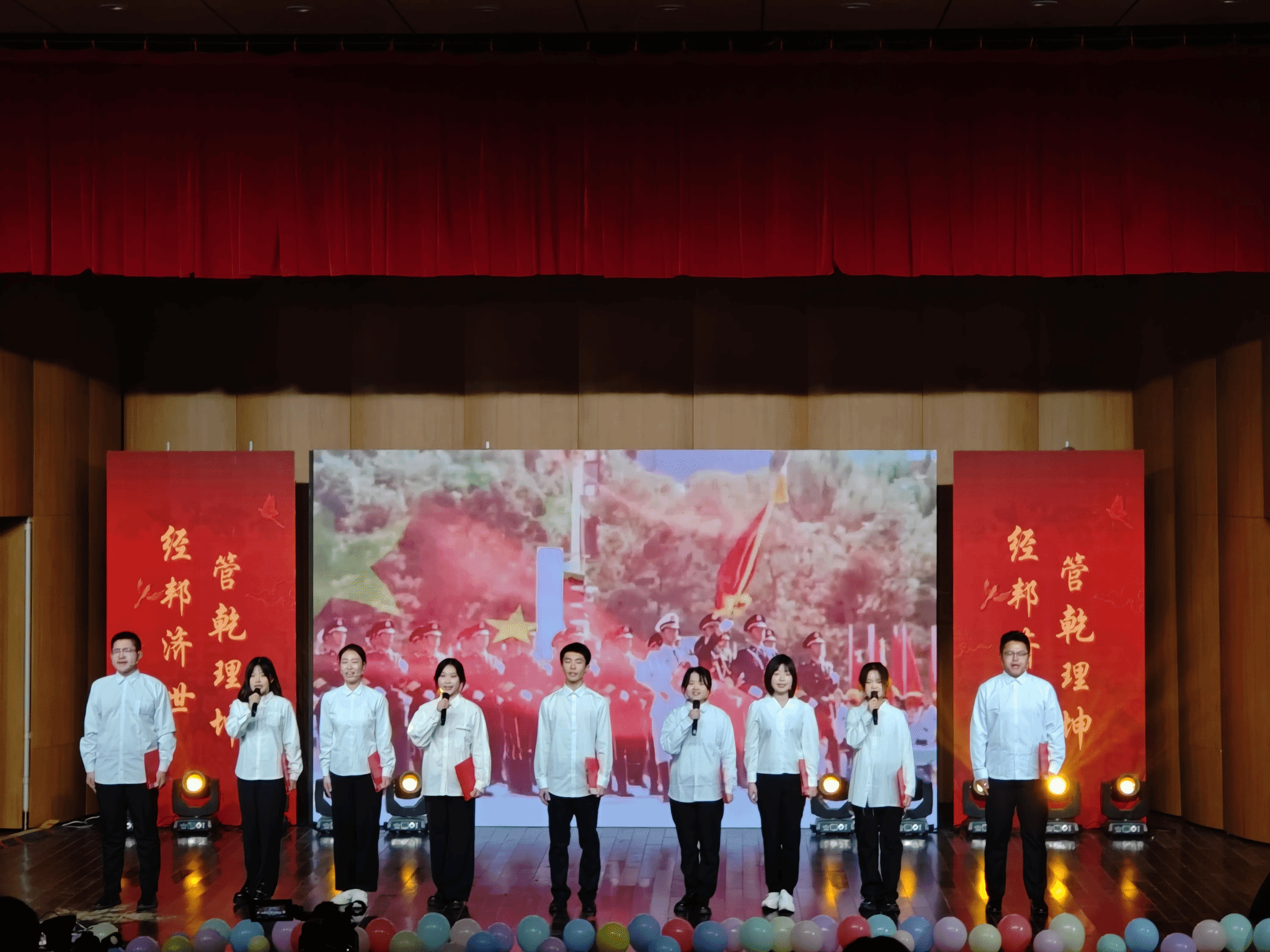 的老师们也参与到表演中,李裕鸿老师带来的歌曲《最远的你是我最近的爱》将全场气氛推向高潮,刘鹏飞和李颖老师的歌曲《我们都是追梦人》更是作为压轴节目最后出场。现场观众纷纷挥舞着双手,有节奏地打着节拍,营造了师生共乐的和谐欢乐氛围。