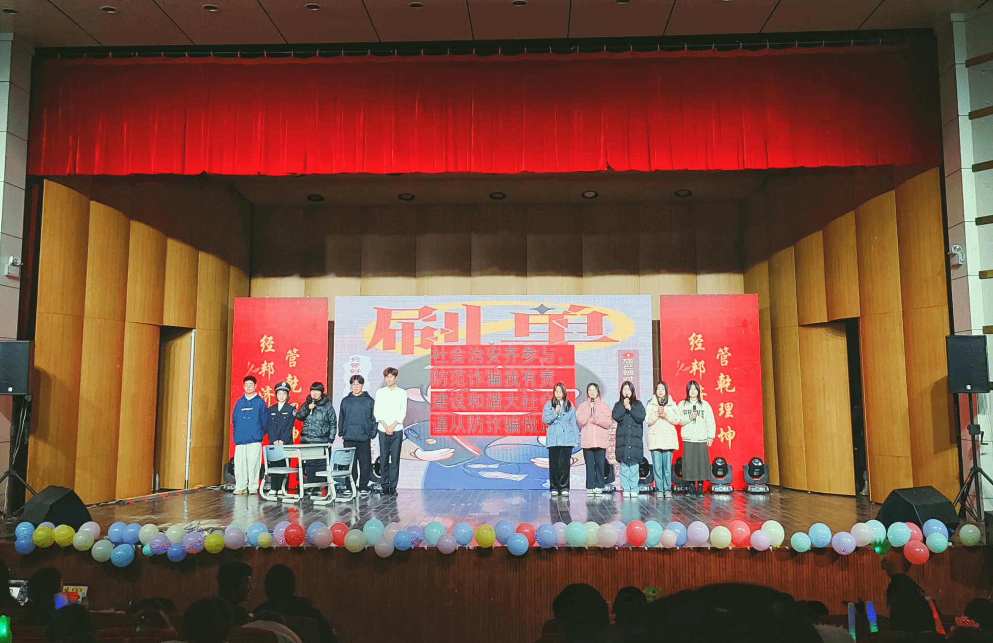 晚会的节目形式多样,包括现代舞、歌曲、舞蹈、戏曲、小品、朗诵等。其中,现代舞《bang bang》以活力四射的舞姿瞬间点燃全场;歌曲《爱的回归线》以婉转动听的歌声诉说青春的美好;小品《少爷和我》则以其妙语连珠、金句频频的表现形式贯穿始终;《Our time》的舞蹈表演赢得了阵阵喝彩;深情的诗歌朗诵《我和我的祖国》点燃了同学们心中的梦想;走秀《华夏衣冠》使大家感受到了传统文化之美;小品《向叮当与贾浩仁》则以其匠心独运的形式和幽默风趣的语言令人印象深刻,提醒同学们要增强防诈意识。