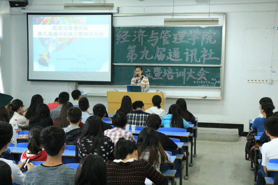 第九届通讯社成立暨培训大会上,校学生会通讯社社长何云凤演讲前提出这个问题。众人都摸不着头脑,疑惑地讨论,只有一个人给出了正确答案。一个问题引起大家的兴趣,“一名通讯社成员一定要具备良好的观察力度。”何云凤社长直接点明话题,顿时掌声热烈。接着以满足山村孩童阅读需求、由校学生会援建"爱心书屋"为例讲解写稿的要求,并展示了一系列摄影作品,同学们收获颇多。